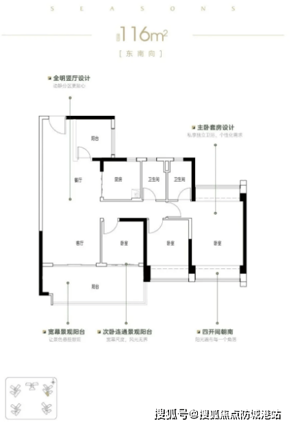 115-116㎡四房两厅两卫:针对二胎家庭或三代同堂的改善需求,该户型采用LDK一体化设计,将客厅、餐厅、厨房连通,增强家庭互动空间,让家人在不同区域也能保持交流。双阳台设计兼顾实用与视野,一个用于日常晾晒,一个用于休闲观景,提升居住舒适度。主卧套房配备独立卫浴,保障业主隐私,其他房间空间布局合理,可灵活作为儿童房、书房等。该户型总价390-400万,完美适配改善型家庭的居住需求。