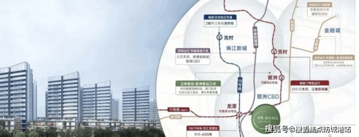 项目交通便利,距离地铁18号线和在建11号线龙潭站约1.2公里,步行可达,双地铁交汇确保业主高效通达珠江新城、琶洲CBD及周边核心商务区。自驾方面,项目周边有新港路、新滘路及华南快速,20分钟可达珠江新城或琶洲CBD,同时车陂隧道、鱼珠隧道等规划隧道将进一步提升区域连通性。完善的轨道和道路网络,使得项目居住者无论通勤、商务还是休闲出行,都能轻松实现高效出行。