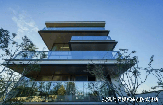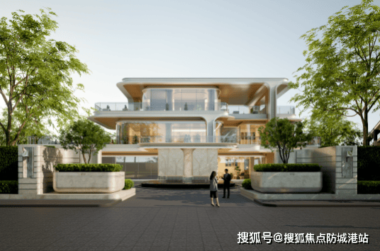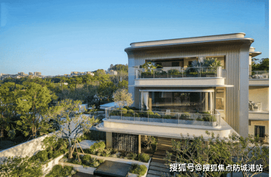 建筑设计方面,项目采用台地设计,层层深入、步步高升,最后落定于一方天地院落,以山湖为幕,循四重礼序而归,这条融中式礼序于现代设计的动线,广州少有,放眼全国高端墅居亦难得一见。外立面选用铝板、石材与玻璃等高端材质,搭配浅色香槟金的金属板与奢石质感,呈现出油画框般的美学效果,历久弥新;大面积落地玻璃搭配几乎与建筑同宽的玻璃栏杆,超高窗墙比,实现巨幕式采光,一扫传统墅居的阴霾,让室内空间与自然景观完美融合,每一户都能享受充足的阳光与湖景视野。