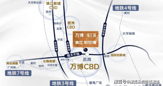 珠江万博城拥有立体式的交通配套,为业主的出行提供极大便利。轨道交通方面,步行约550米即达员岗地铁站,7号线与18号线在此交汇。通过7号线,可便捷到达广州南站等重要交通枢纽;18号线则以其快速高效的特点,实现1站到南村