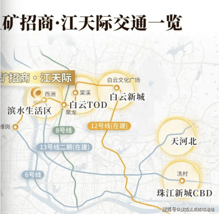 五矿招商江天际的交通优势堪称广州楼市的顶配。项目位于槎头站上盖,该站点是广州罕见的“三地铁交汇”枢纽,汇集了地铁12号线、13号线二期以及规划中的佛山8号线。