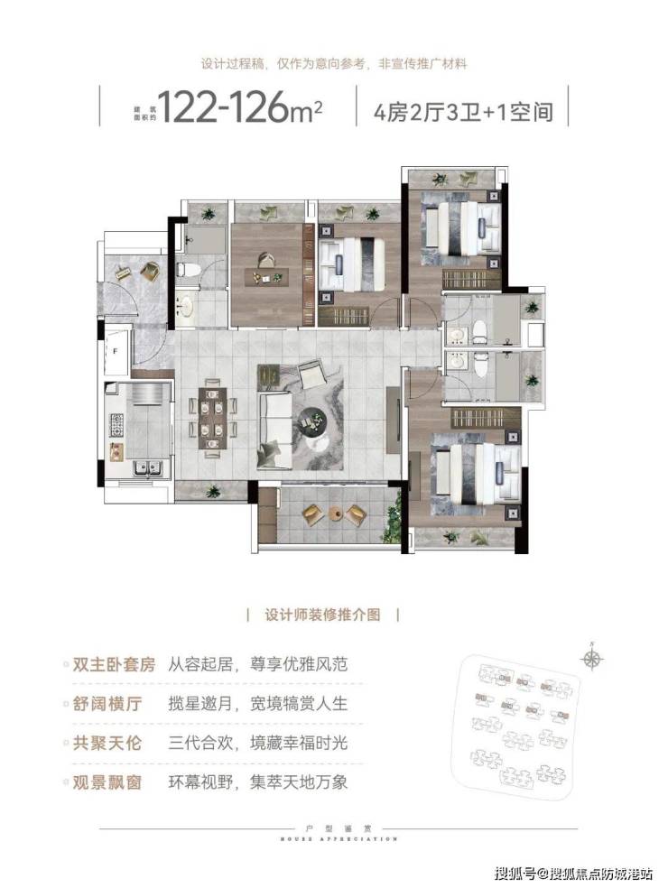 城投珠江天河壹品当前在售的产品包括96-143平方米的3+1至5+1户型。这些户型设计合理,动静分离,格局方正,采光良好,满足不同家庭结构的需求。例如,建面96平方米的3+1房户型三开间正南向,而120平方米的4+1房户型则拥有四开间朝南的大飘窗设计,提供了宽敞明亮的生活空间。