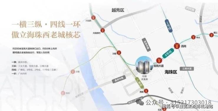 项目地址:广州市海珠区昌岗中路核心地段,占位宝岗大道城市主轴,立足海珠西三大黄金走廊交汇腹地
