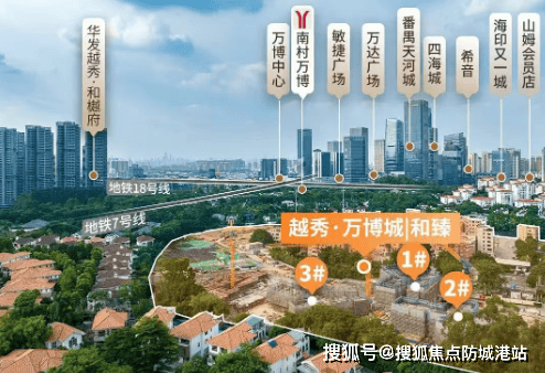 越秀·万博城距离18号线南村万博站仅约800米,地铁3号线、7号线及18号线在此交汇,实现了三站琶洲、四站冼村的高效出行。此外,项目紧邻广州南站,能够快速畅达大湾区各市,为商务人士提供了极大的便利。