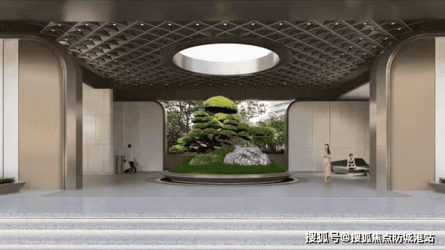 中央花园会客厅采用双层立体叠水设计,营造专属风雅社交空间;