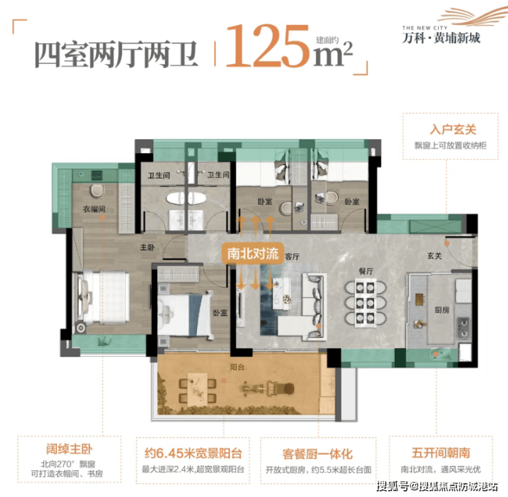 得房率:飘窗全赠送、阳台半赠送,最高得房率 130%,远超区域平均水平;
