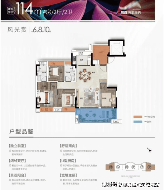 旭辉光屿南方在售户型种类丰富,涵盖71㎡-114㎡多种面积段,户型设计科学合理,全朝南开间,动静分离,方正实用,同时配备大尺度双联阳台,采光通风更佳,能充分满足不同刚需家庭的居住需求。