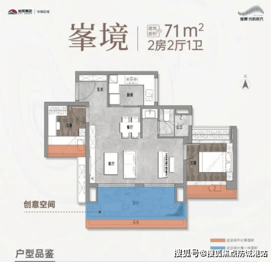 71㎡小户型:该户型为两室两厅一卫设计,布局紧凑合理,无浪费空间。全朝南开间,客厅连接双联阳台,保证了充足的采光和通风;动静分离设计,休息区与活动区互不干扰,提升居住舒适度。适合新婚夫妻或小型三口之家居住,低总价、低首付的特点也让购房门槛更低。