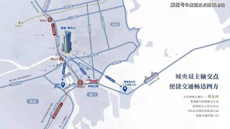 路福·星光上坐落于珠海主城区的粤海路和明珠路交汇处,毗邻前山轻轨站,距离拱北口岸也仅约4公里。周边拥有港珠澳大桥南湾段、粤海路、明珠路等五大主干道,便捷的交通网络让业主可以快速前往拱北,澳门以及其他重要目的地。此外,附近还有丰富的商业配套和生活设施,构筑了1公里步行城市生活圈,为居民提供便捷的购物、娱乐和生活体验。