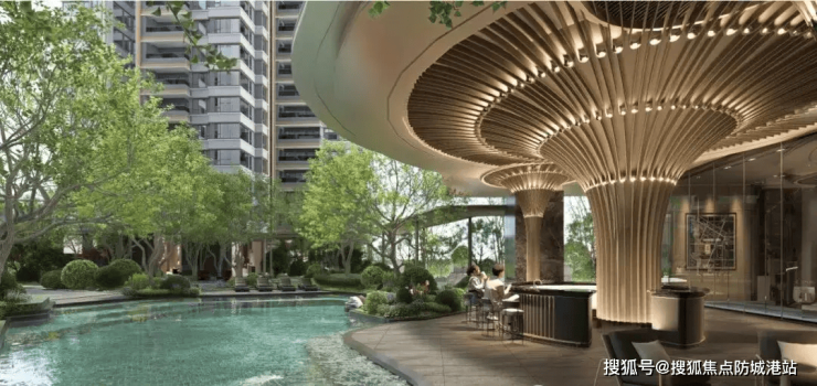 同时,项目内部打造岭南特色园林,融合山水、绿植、建筑于一体,打造 “一轴三园五景” 的园林景观,设置休闲廊架、水景喷泉、儿童乐园、老年活动区等功能区域,实现 “内外双园” 的生态居住体验,让业主在城芯也能享受自然生态之美。