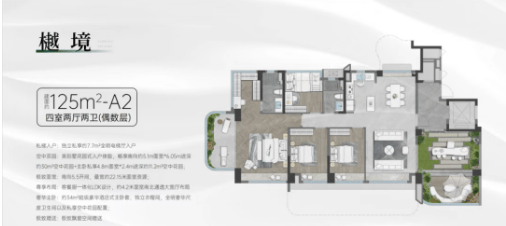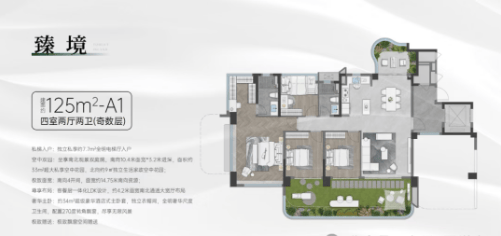 125㎡户型:拥有更大的空中花园和更宽敞的居住空间,适合追求高品质生活的家庭。