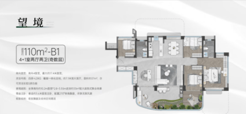 110㎡户型:相比旧规同面积段户型,拓展了大量实用空间,享受面积可达170㎡。