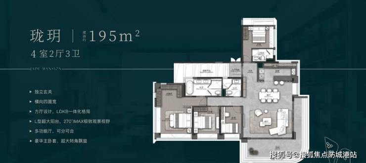 195㎡大平层:最新加推,2 梯 3 户,可改五房,6.8 米宽客厅,兼具湿地与城市景观。