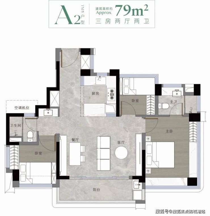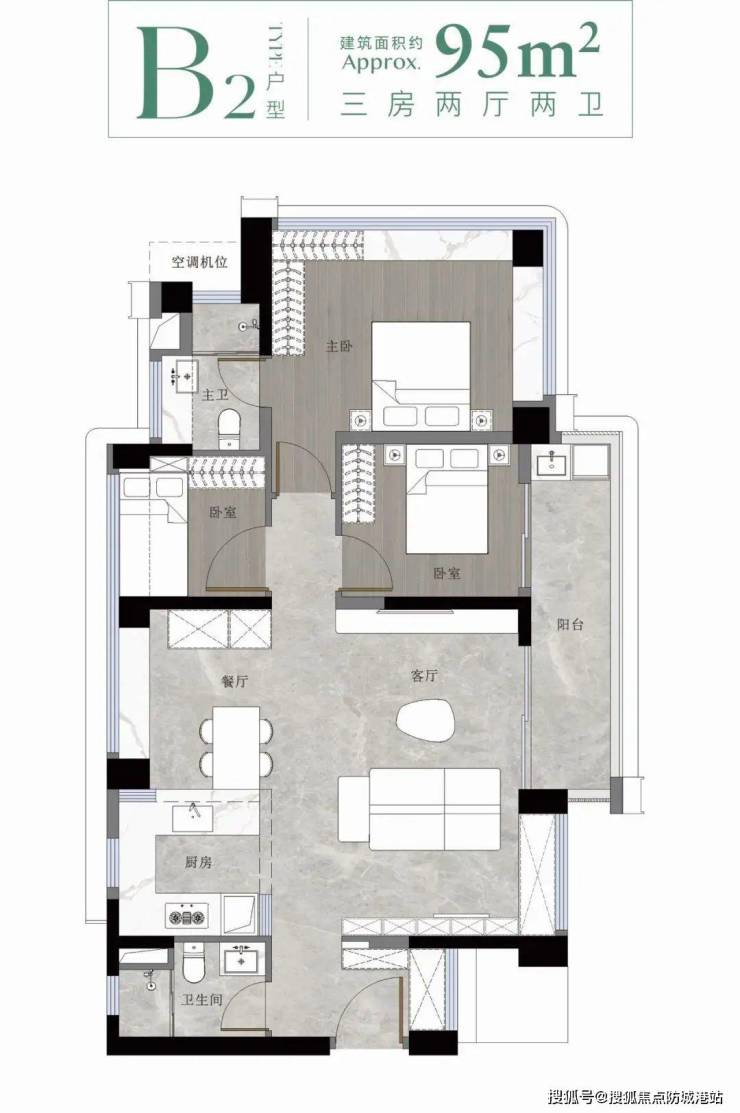 四、户型设计:南向全飘窗+高实用率 户型面积段79-142㎡三到四房,主打改善型产品,全部南向,带超大阳台,主卧标配270°或240°转角飘窗,采光与视野俱佳。项目最大亮点是高使用率,基本都达到100%以上,满足刚需到改善不同阶段家庭的需求。