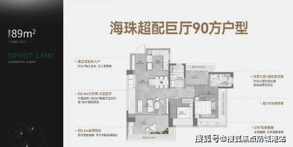 中建天钰主打89㎡、100㎡、120㎡和134㎡四种面积段的全南向户型,每个户型都实现了高赠送率和宽敞的空间设计。例如,89㎡户型使用率达到约115%,配有内外双玄关和LDKG+X一体化设计,实现4.8米巨厅和灵活的三房布局。100㎡户型则为海珠区内唯一的100方内正四房设计,配备4.1米方正巨厅和7.2米大平层级阳台。120㎡和134㎡户型更是提供了南北通透的大四房选择,空间感十足,满足不同家庭的需求。