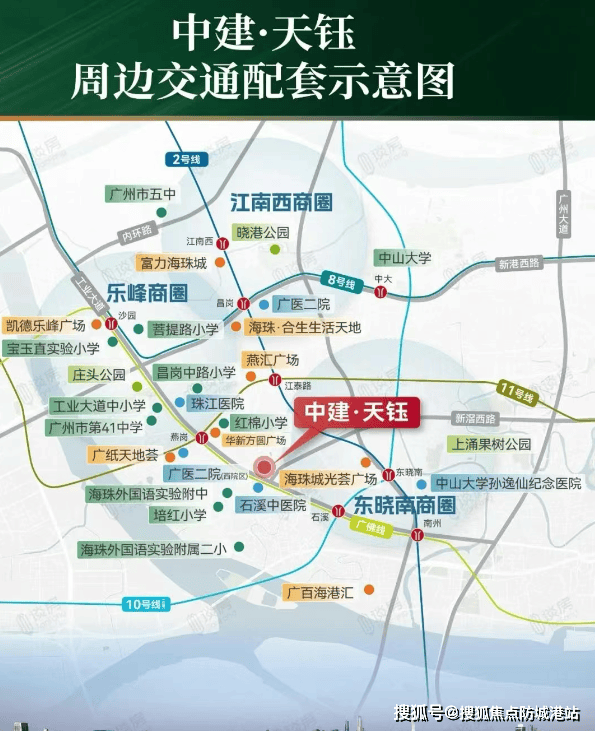 中建天钰地处交通便捷之处,双地铁线环绕,距离广佛线燕岗站和石溪站分别只有750米和900米的步行距离。其中,燕岗站也是大环线11号线的站点,方便前往广州多个核心区域;而石溪站则是广佛线与10号线的换乘站,直达珠江新城等地。此外,项目位于两条主干道交汇处,虽然可能存在一定的噪音问题,但未来将沿项目打造规划路,以缓解交通压力并减少噪音影响。
