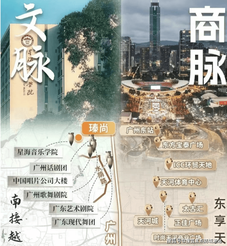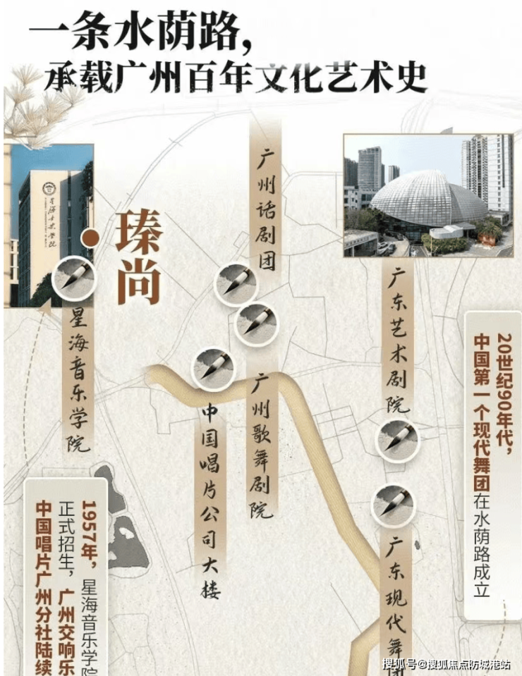 英广瑧尚所在的越秀与天河接壤地带,是湾区文化与商业融合创新的典型区域,彰显产城融合的独特魅力。这片土地承载着广州百年文化艺术根基,水荫路集聚了广州歌舞剧院、广州话剧团、星海音乐学院等数十家文化机构,从《花城》杂志到现代舞团,这里始终是广州文化创新的源头,延续着深厚的人文底蕴。