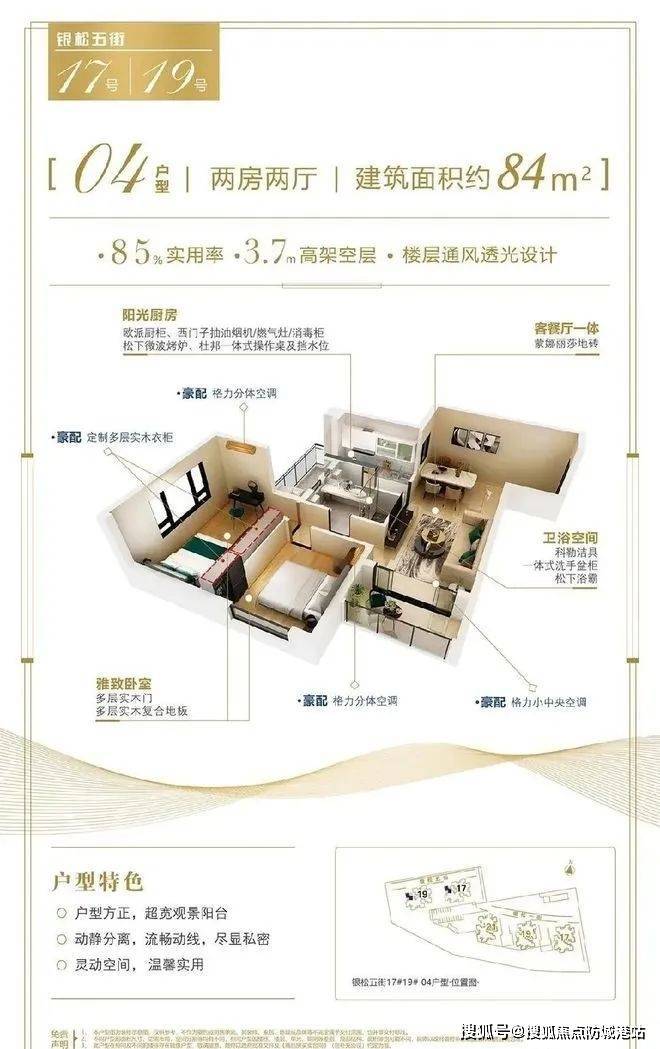 75-92㎡大二三房:一线大牌精装交付,户户南北对流,方正实用,双阳台设计,卧室皆带飘窗,引更多阳光美景入室。空中通道储物空间设计,首创式收纳体系,极大提高空间实用率。装修选材优质,包括欧派定制衣柜、格力中央空调、蒙娜丽莎地砖、科勒淋浴、松下浴室宝 / 微烤炉 / 排气扇、西门子油烟机 / 燃气灶、欧普照明灯等,品质过硬,全面提升居住舒适度。
