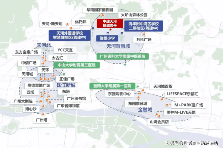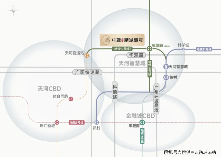 【地理位置】中建精诚壹号坐落于天河智慧城核心板块,位居广州第三中轴之上,是粤港澳大湾区科技创新走廊的首要节点。项目北靠火炉山森林公园,东临约3万㎡原生态东大湖,处于智慧城产业聚集区核心范围,周边汇聚小鹏、网易、酷狗、中国移动等2800多家高精尖科创企业,承接区域产业发展红利。