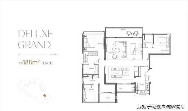 190平方米四房两厅三卫双套房:T2组合、7米大阳台、9米阔卓厅堂,诠释功能与奢适完美结合的理想居所。