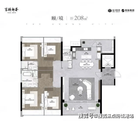 富颐都荟推出多种户型供选择,从95㎡到208㎡不等,每种户型设计均注重空间利用效率和居住舒适度。特别是最新推出的R5/R6两梯四户户型,户户朝南,拥有极佳的采光和景观视野,且使用率超过100%,为住户提供了一个宽敞明亮的生活环境。