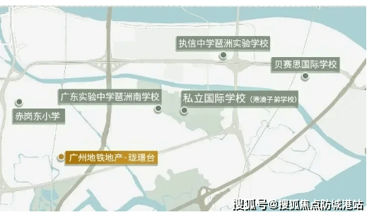 项目对应小学为赤岗东小学,周边有海珠中学等公立中学,西侧规划 18 班中学,区域内还有省实琶洲南学校、贝赛思国际学校等优质教育资源。