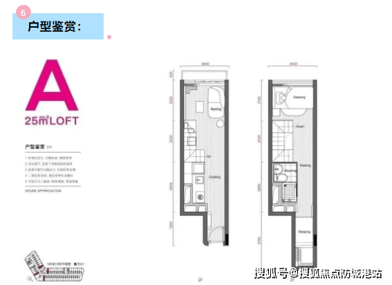 25㎡ LOFT户型(折梯式设计):一层规划开放式客厅、独立厨房及干湿分离卫浴,空间通透流畅,满足日常起居需求;二层为百变拓展空间,可根据需求打造卧室、书房或衣帽间,同时配备主人套间,保障居住私密性。该户型布局紧凑实用,得房率高,适合单身精英或年轻情侣自住,也可作为投资房源,出租需求旺盛。