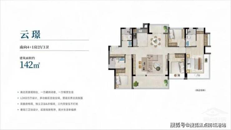 再看建面约一百四十二平方米的改善型户型。这不仅仅是一个房子,更是一个家族的府邸。五房三卫的超大格局,满足了多代同堂或者二胎、三胎家庭的居住需求。最让人称道的,是其采用的四开间朝南设计。在南国广州,朝南意味着阳光、温暖和干燥。四个主要房间(通常是客厅和三个卧室)全部朝南,使得整个屋子在白天都能沐浴在温暖的阳光下。这种设计,不仅采光极佳,通风效果也是绝绝子。南北对流,清风穿堂,让室内空气时刻保持着新鲜与流通。无论是冬日的暖阳,还是夏日的凉风,都能自由地进出家门。站在阳台上,俯瞰园区美景,感受阳光的抚摸,这种生活体验,是其他朝向的户型无法给予的。