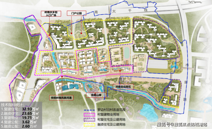 罗边村旧改100万㎡里,包含了32.9万㎡的安置住宅,以及23.7万㎡的融资住宅区。剩下的面积都是商业、教育等其他配套。在这其中,还包含了一条面积1.6万㎡的商业街,和3.9万㎡的岭南风情商业街。