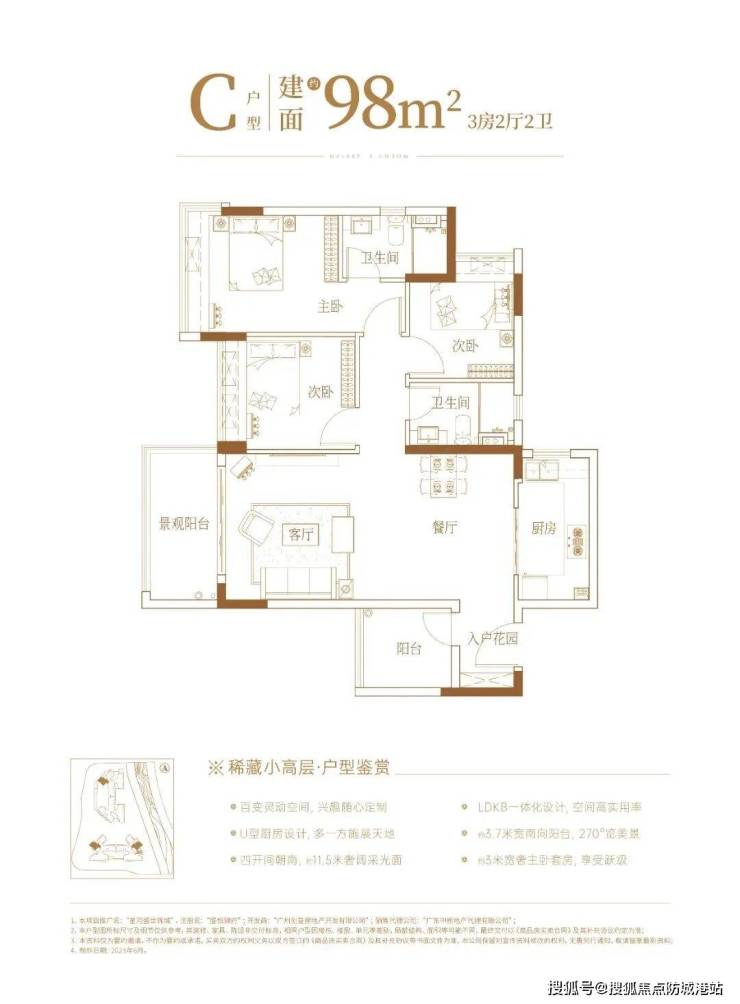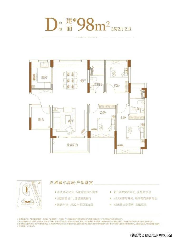 户型方面,选择会比较多,有95㎡三房、98㎡三房(有C、D两个户型)、99㎡三房、128㎡四房,一共五个,均为+1房设计,据说实用率达到约95%。