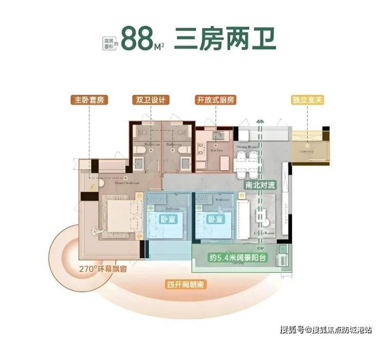 3.1 88平方米三房两卫:刚需小家庭的极致空间魔法