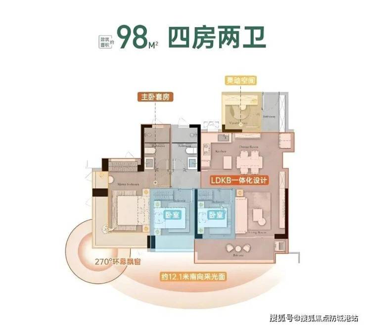主卧的设计更是独具匠心,配备了270度的环幕飘窗,这不仅增加了室内的采光和通风,更极大地拓展了实际使用面积。据测算,这个主卧的实际使用面积与传统100平方米户型的主卧相当,让您在有限的空间内也能享受到宽敞舒适的居住体验。飘窗可以改造成休闲区、阅读角或者梳妆台,满足您多样化的生活需求。两个卫生间均采用干湿分离设计,提高了使用的便捷性和舒适度。此外,户型中还预留了多处收纳空间,如玄关柜、衣柜等,帮助您轻松解决储物难题,保持家中的整洁有序。