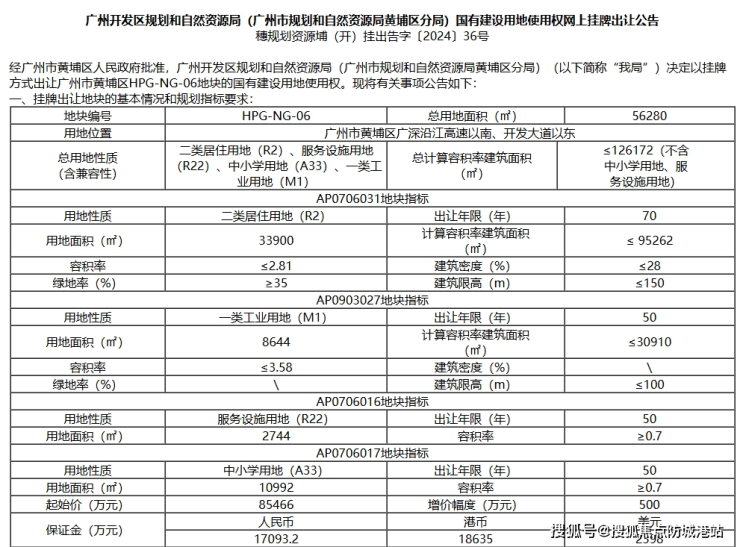 2024年12月2日,黄埔区广深沿江高速以南、开发大道以东的HPG-NG-06地块,迎来了它的归宿。中交城投与广州峻森投资联合体以底价8.5亿元拿下了这块总建面12.6万平方米的土地。