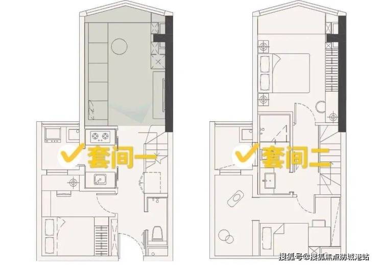 其中的58㎡和57㎡的Loft公寓,业主可以通过加门间隔改为双钥匙和三钥匙设计,而且每个套间都是有卫生间和采光窗。