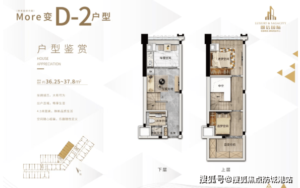 户型方面,项目主推 30-75㎡精装产权复式,涵盖 30-40㎡小面积户型与 50-75㎡大户型,满足不同人群的置业需求。30-40㎡小面积户型,总价 56 万起,低门槛入手城芯资产,适合年轻刚需自住、单身精英居住或小型创业办公;50-75㎡大户型,总价约 100 万出头,空间更宽敞,适合小家庭居住、多人办公或高端租赁,户型格局方正,采光通风俱佳,4.5 米挑高打造双层独立空间,下层规划客厅、厨房、卫生间、休闲区,上层规划卧室、储物区,动静分离,功能分区明确,居住舒适度与实用性拉满。