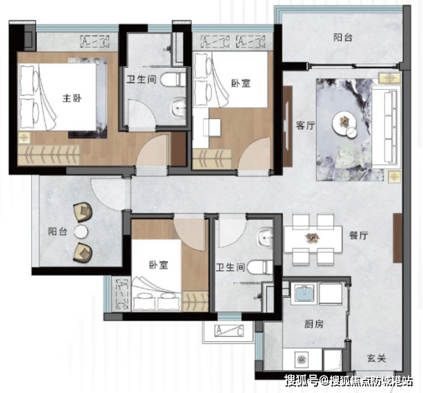 88㎡三房两厅两卫:罕见的紧凑四房设计,适合追求高实用性的家庭。