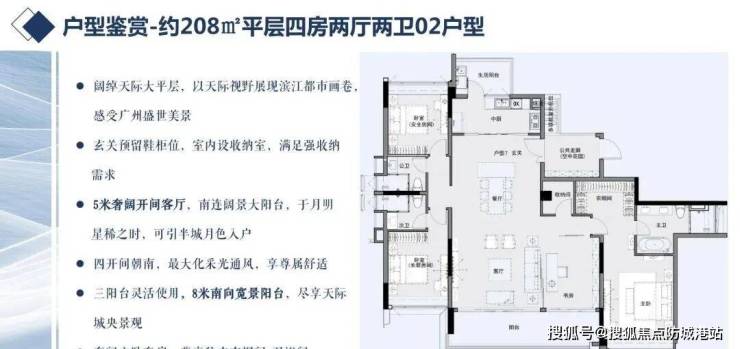 220平方米大平层:高端奢华设计,2梯2户专属入户空间,双主套双阳台,南北通透,采光充足。