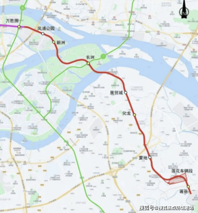 目前项目的公共交通出行较为不便,最近的地铁4号线距离项目约10公里,公交线路也比较少。不过,项目的自驾条件优越,距离南大干线仅750m,南大干线双向6-8车道,限速80km/h,接驳新化快速,可畅达广州主城区,去往琶洲仅需26分钟,10分钟可到大学城,15分钟可到省妇幼,25分钟可到万博。此外,周边还有规划中的3条过江隧道,包括沙渔洲隧道、化龙隧道、莲花山隧道,建成后最快10分钟可到黄埔。在轨道交通方面,未来有一定的发展潜力,规划中的地铁8号线东延线(莲花湾至万胜围)预计2027年底通车,届时莲花湾到海珠只需20分钟,且项目距离莲花山枢纽站较近,该枢纽站还规划有17号线、佛莞城轨、穗莞深琶洲支线等,交通枢纽的形成将提升区域的交通便利性。