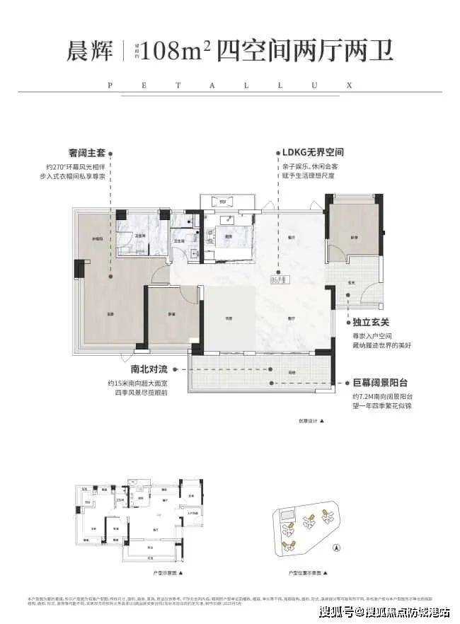 产品:建面75-108㎡三至四房,全南向设计,得房率超85%(新规户型)