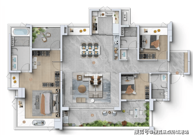 这一举措的背后,是开发商对产品力的极致追求。通过改规,新项目在空间利用率、居住舒适度、景观视野等方面实现了全面突破。特别是针对改善型客户关注的痛点,如得房率低、通风采光差、景观遮挡等问题,新规产品给出了完美的解决方案。近100%的使用率,意味着购房者购买的每一平方米建筑面积,几乎都能转化为实际可用的室内空间,真正实现了“花同样的钱,住更大的房”。