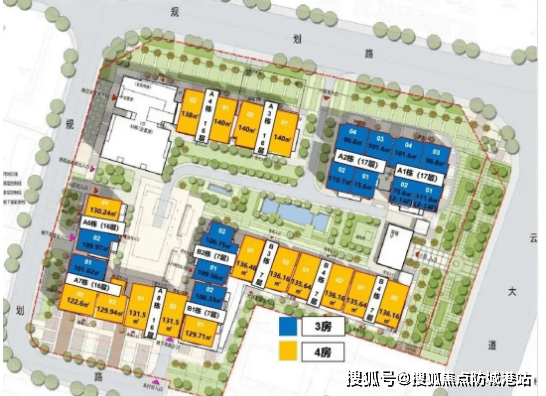 总栋数:13栋,包含8栋15-17层小高层和5栋6-7层多层住宅,塔板结合的建筑类型,兼顾采光与通风需求