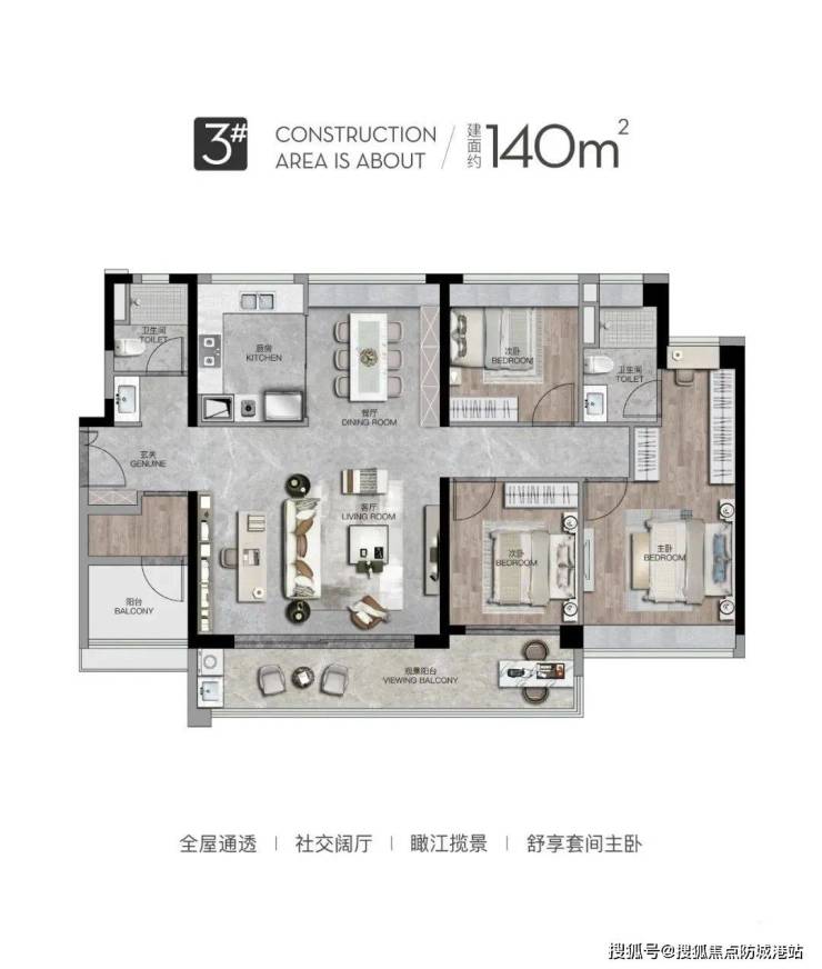 目前在售的3号楼央景品质大宅,建筑面积约125-140㎡,设计灵活多样,充分考虑到了居住者的审美需求和生活习惯。无论是追求现代简约还是温馨舒适的居住体验,这里都能找到合适的居所。特别是其独特的江景资源,约93%的户型可享受江景,前排更是实现了100%的一线景观视野,为住户带来了无与伦比的居住体验。