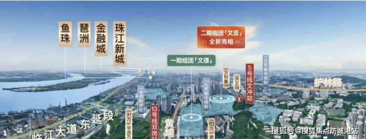 项目位于广州市黄埔区鱼珠街道港前路之北,紧邻天河金融城鱼珠CBD,是广州“两江东进”战略的桥头堡。根据广州市轨道交通局实测认证(穗轨测〔2024〕216号),项目距离地铁5号线大沙地站约850米,步行13分钟可达;距离地铁13号线鱼珠站约1公里,1站直达天河,5分钟金融城,20分钟珠江新城。临江大道东延段预计2025年开通,鱼珠隧道将于2025年下半年完工,未来通勤效率将进一步提升。