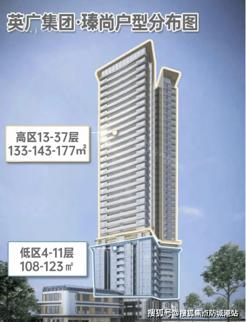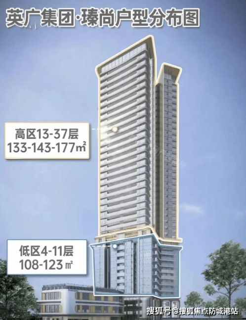 楼层分布: 低区4-11层,约64户;高区13-37层,约144户,每层配备5部电梯,其中低区2部,高区3部。