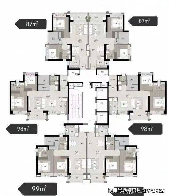 115㎡四房:横厅设计+主卧套房,满足改善型需求。