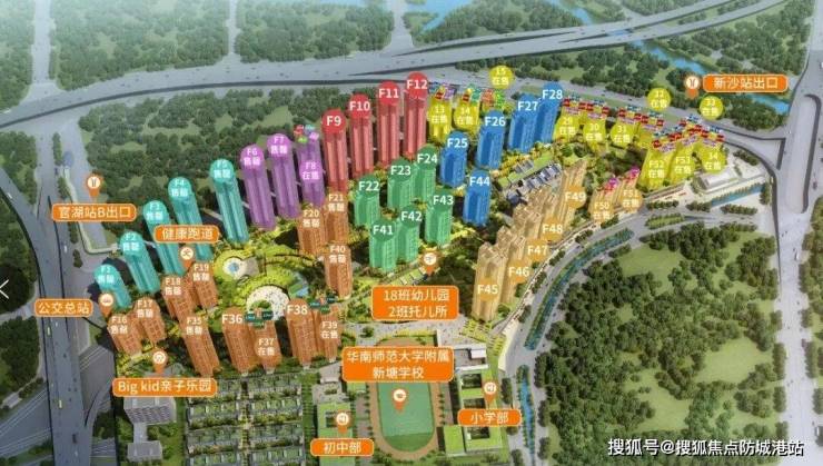 教育:配建9年一贯制华南师范大学附属新塘学校(小学42班、初中21班),2所幼儿园及2所托儿所,实现12年目送式教育;