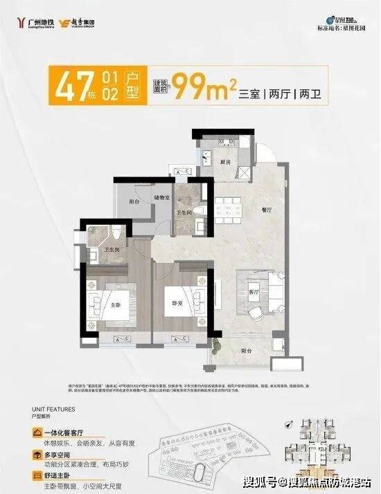78㎡三房:全南向布局,主卧独立卫浴,适合刚需上车;