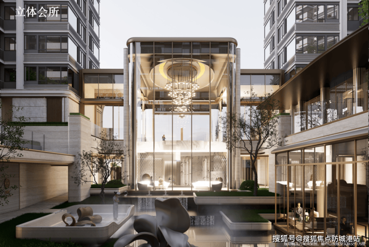 引领现代奢居美学范式,打造下沉式立体会所,覆盖娱乐、健身、儿童、交流等功能交叠的会所聚落,室内外景观功能相互渗透。