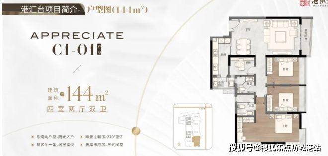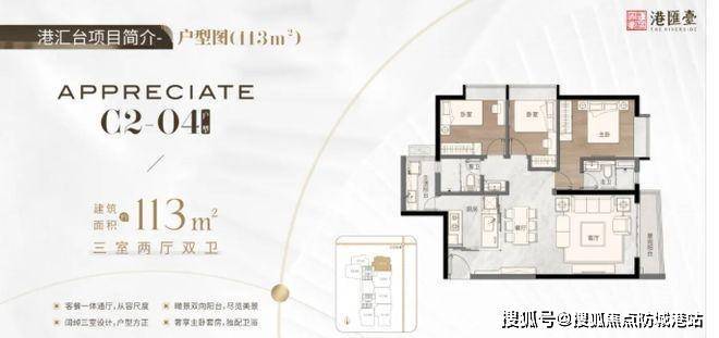 港汇台占地面积约 5400㎡,建筑面积约 36000㎡,由香港上市企业汉国置业开发,港汇物业(第一太平戴维斯物业顾问)提供服务,交标采用世界级一线品牌。项目梯户比为 C1 栋 2 梯 3 户,C2 栋 2 梯 4 户 ,主推 69 - 144㎡二房至四房,共 162 套。其交通极为便捷,楼下 100 米即 6 号线北京路站,步行 600 米可达 2 号线与 6 号线交汇站海珠广场站。教育资源丰富,周边有多所优质学校。生活配套完善,临近多个地标性娱乐场所,楼下配建特色商业,且靠近珠江,部分户型可览江景与城市地标。