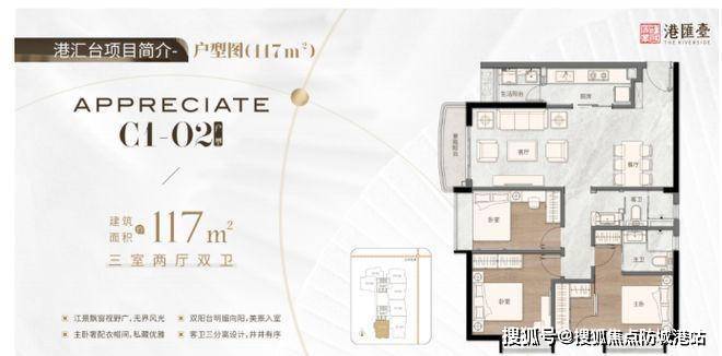 117㎡的三房户型,以其开阔的视野和精致的细节设计,为居住者带来高品质生活体验。阳台与飘台的设计,使得视野更为广阔,无界风光尽收眼底。主卧奢配衣帽间,为居住者提供了充足的收纳空间,满足日常衣物及配饰的收藏需求,私藏优雅生活。